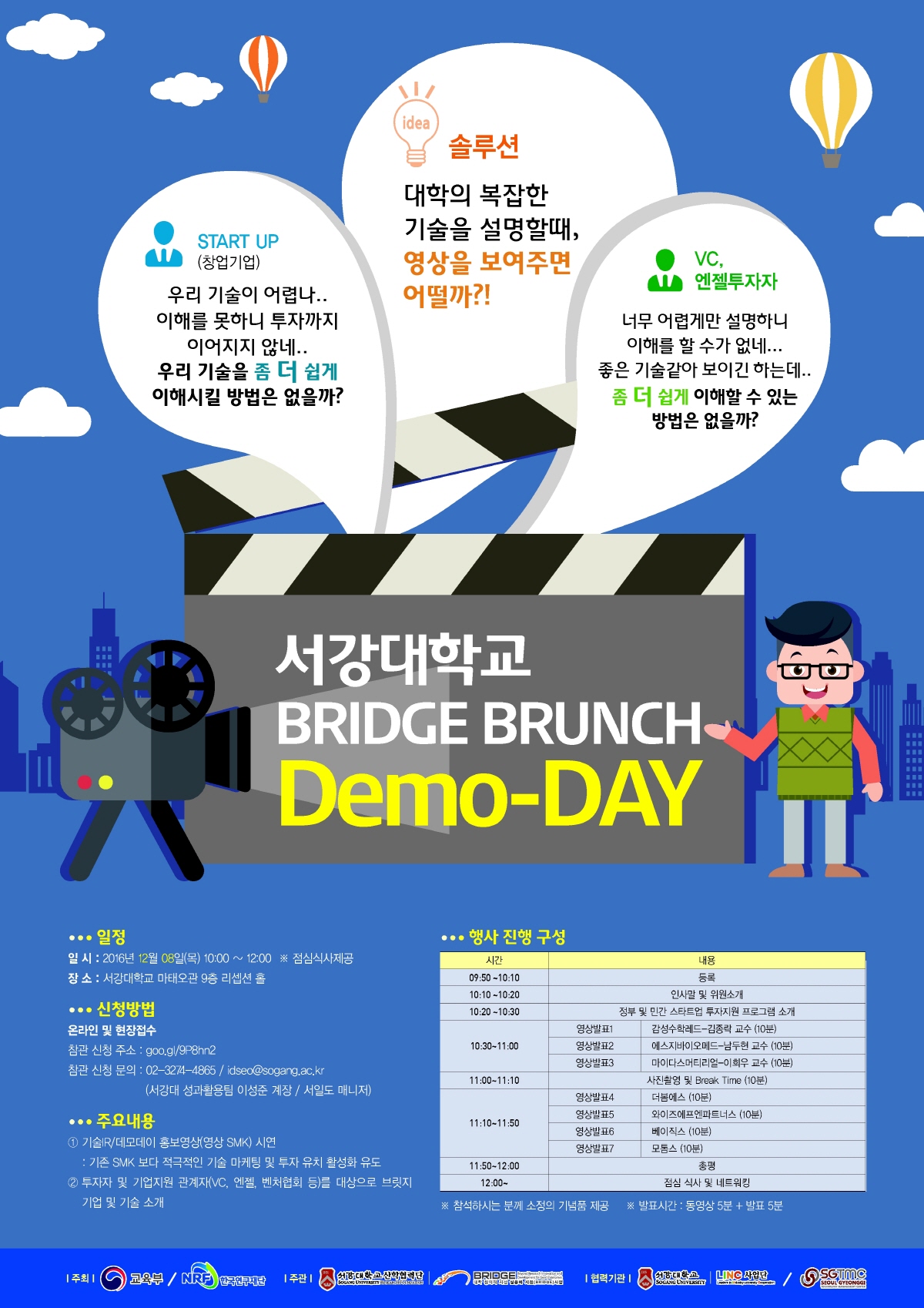 2016년 서강대학교 BRIDGE 후속사업지원 프로그램의 일환으로 창의적 기업/기술 DEMO영상을 활용한 투자유치설명회