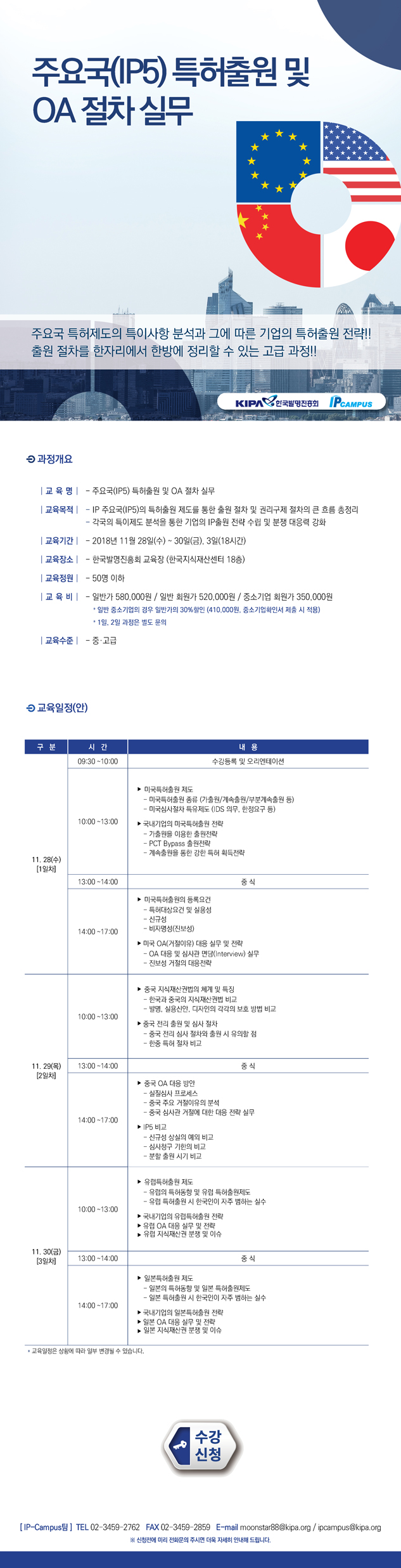 [한국발명진흥회] 주요국(IP5) 특허출원 및 OA 절차 실무