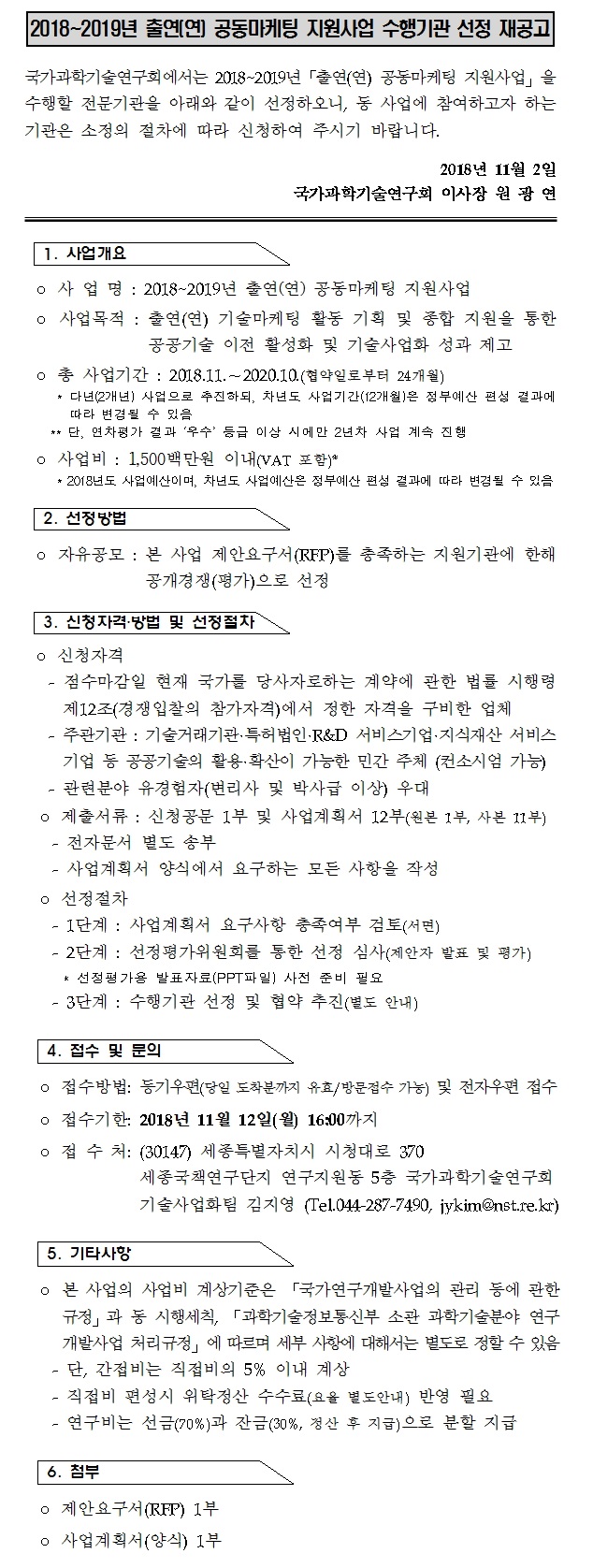 [국가과학기술연구회] 2018~2019년 출연(연) 공동마케팅 지원사업 수행기관 선정 재공고