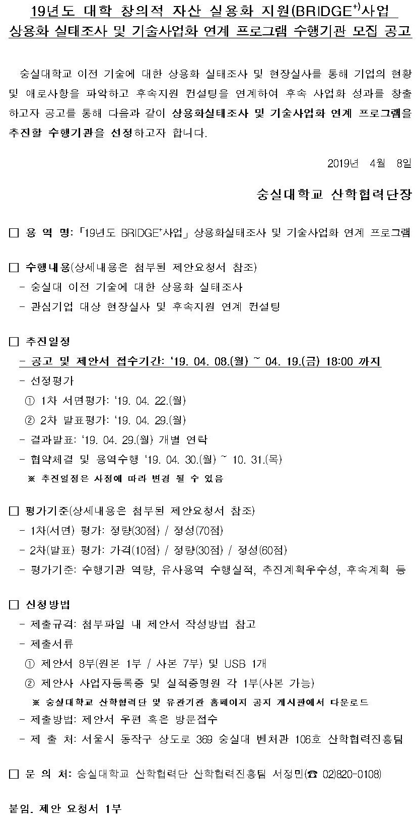 [숭실대] 상용화실태조사 및 기술사업화 연계 프로그램 수행기관 모집 공고