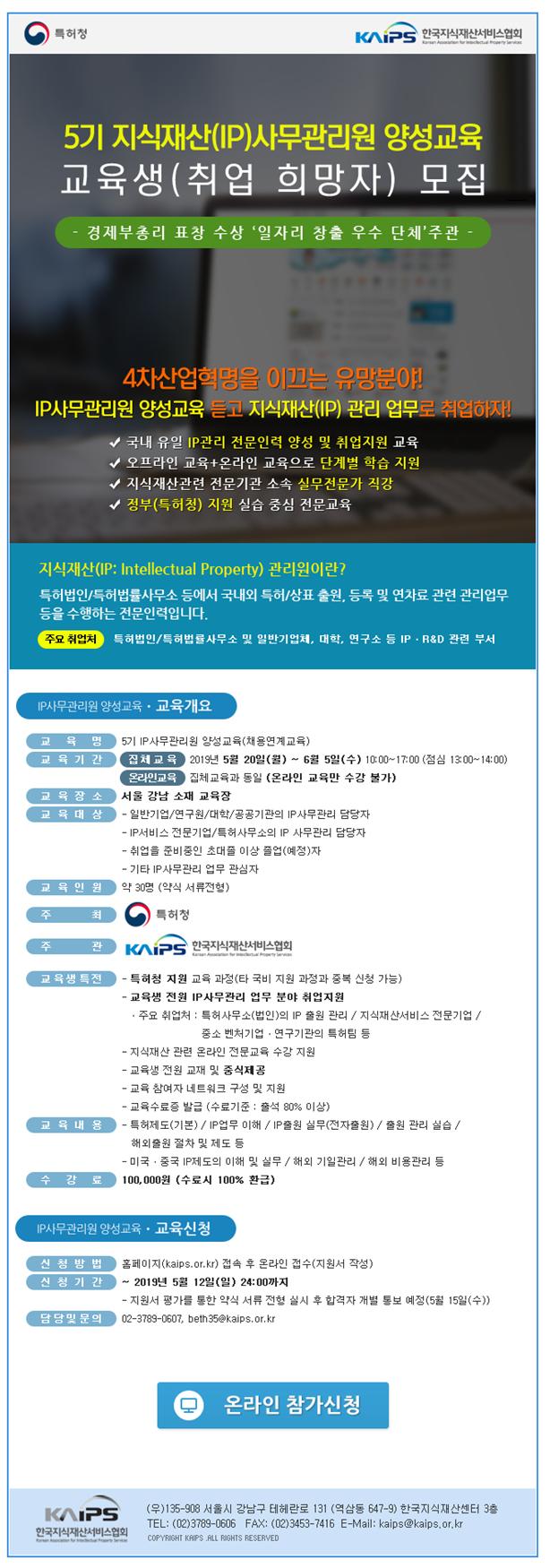 [교육] 5기 IP사무관리원 양성교육 교육생 모집(채용연계)