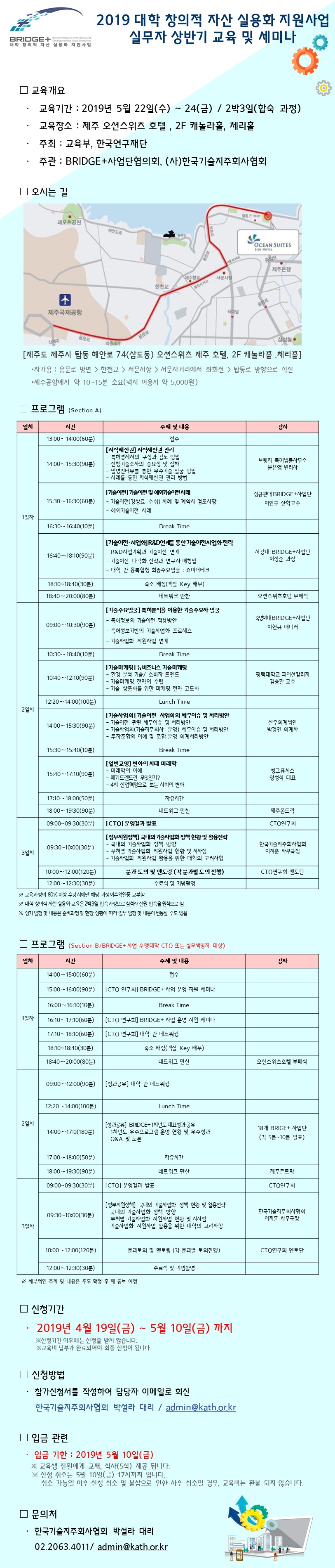 [BRIDGE+/KATH] 2019년 대학 창의적 자산 실용화 지원사업 실무자 상반기 교육 및 세미나 안내