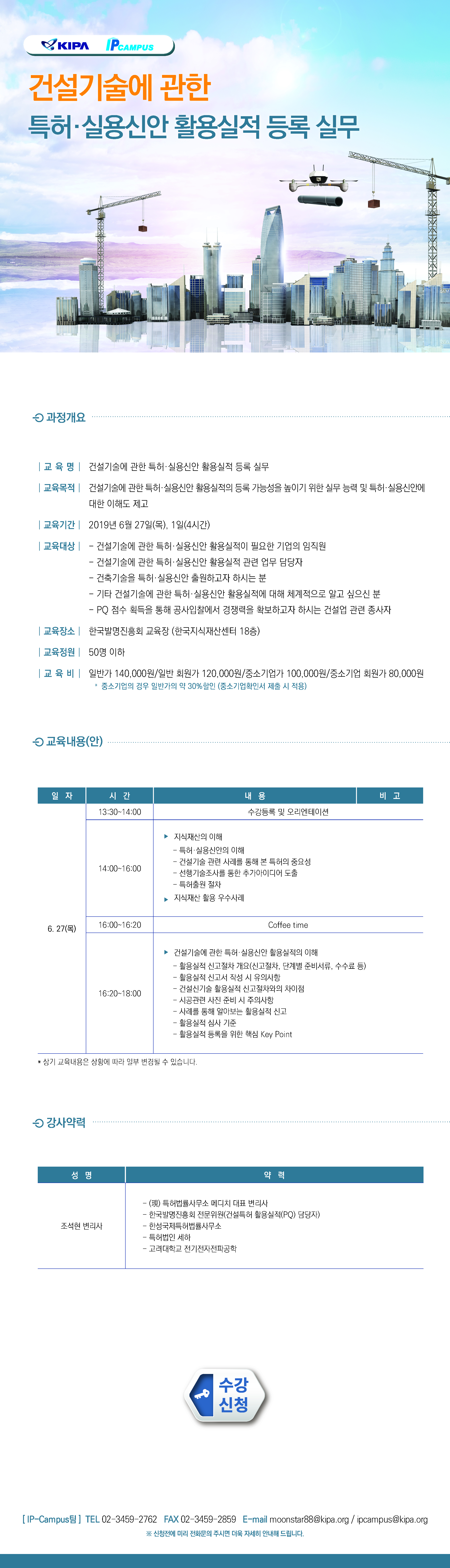 건설기술에 관한 특허 실용신안 활용실적 등록 실무 교육과정 안내