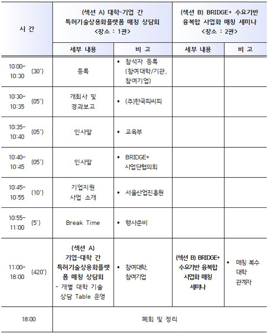(섹션 A) 기업-대학 간 특허기술상용화플랫폼 매칭 상담회