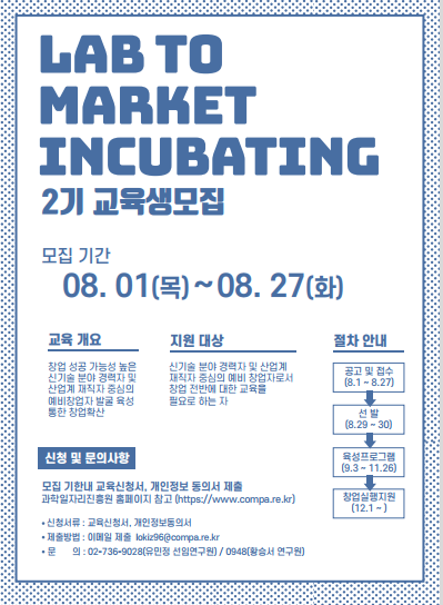 1) 본 사업은 진흥원교육(https://www.compa.re.kr/)의 트랙2 교육프로그램으로서 기술사업화 중심교육임.