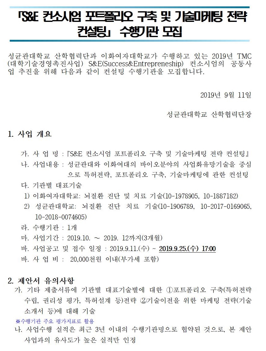 「S&E 컨소시엄 포트폴리오 구축 및 기술마케팅 전략 컨설팅」 수행기관 모집