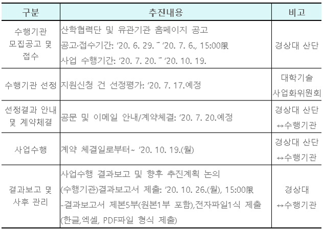 ◦ 수행기관 선정결과 알림 및 협약체결:‘20. 7. 20.(월)