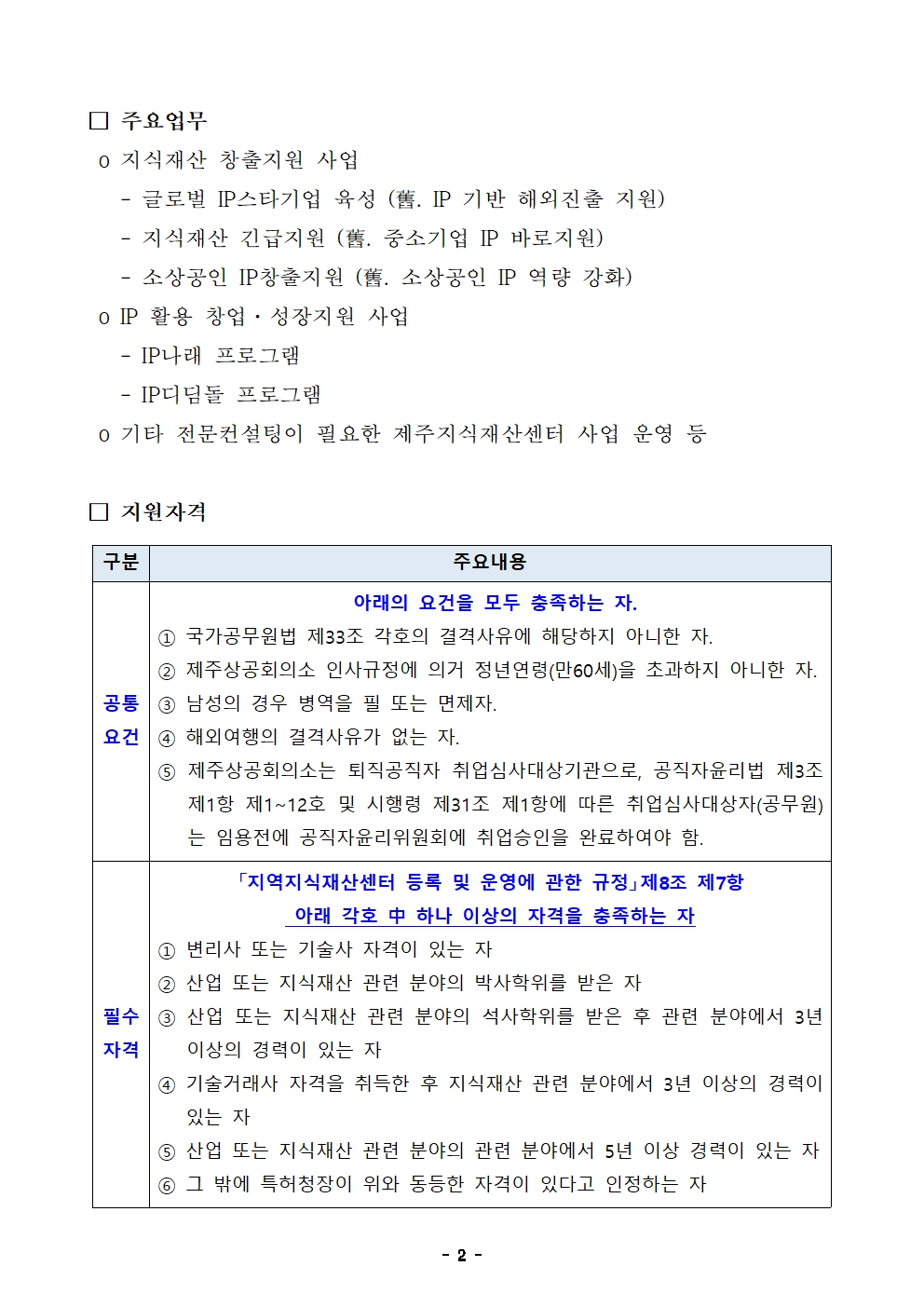 [제주상공회의소 제주지식재산센터] 전문컨설턴트 채용 재공모