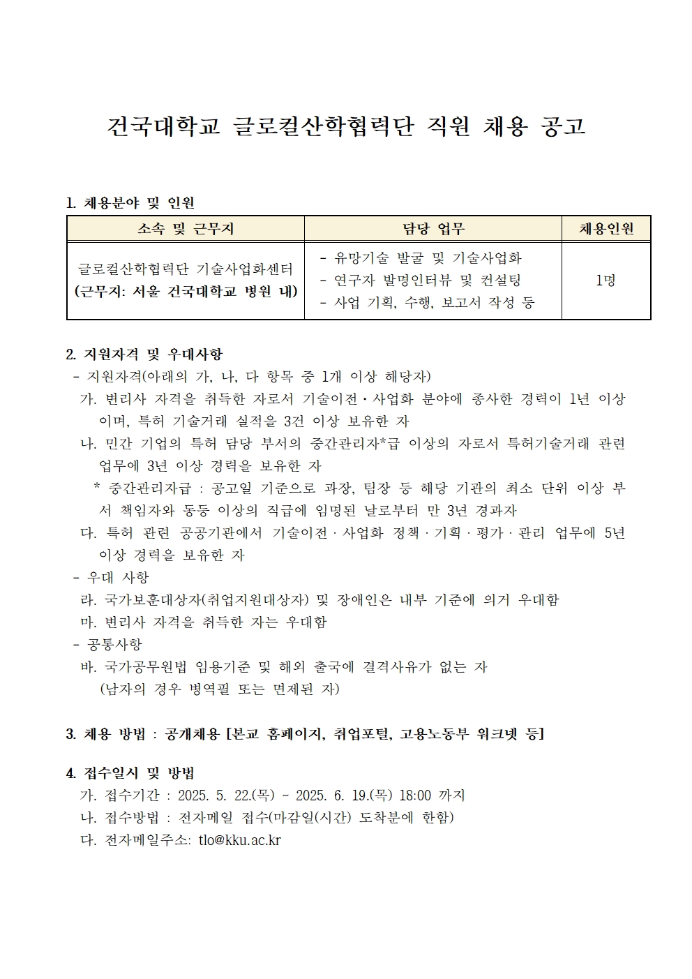 <연장>[건국대학교글로컬]건국대학교 글로컬산학협력단 직원 채용 공고