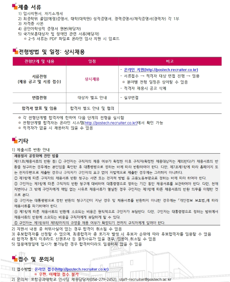 * 온라인접수 바로가기 ->http://postech.recruiter.co.kr