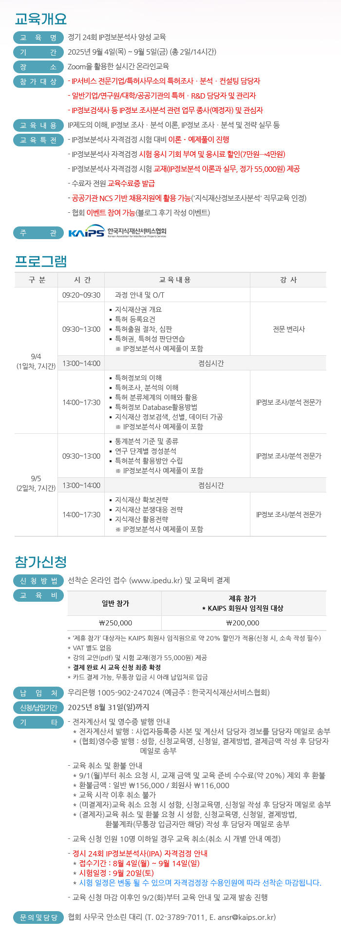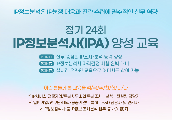 [교육안내] 지식재산정보분석사 양성교육 신청 안내(~8/31)