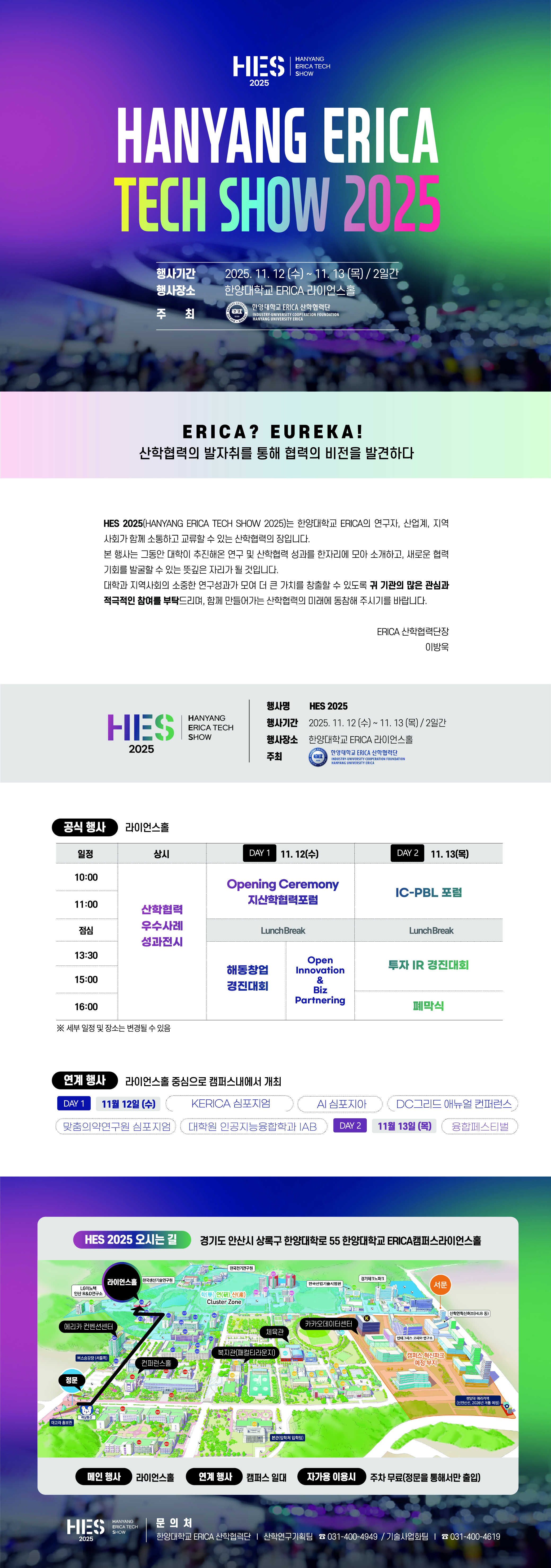 HANYANG ERICA TECH SHOW 2025 행사개최 안내(11월 12일 수요일 ~ 11월 13일 목요일)