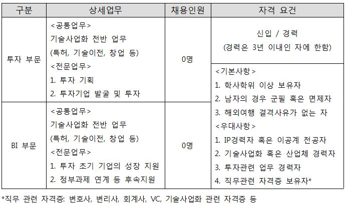 6) 문의처: 기술지주회사 경영지원팀 이민선 (☎ 02-2123-5137)