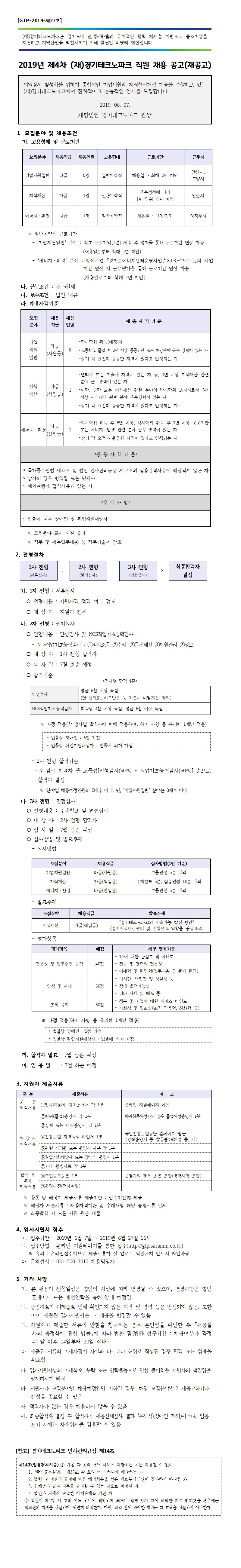 경기테크노파크 2019년 직원채용 공고(재공고)_지식재산