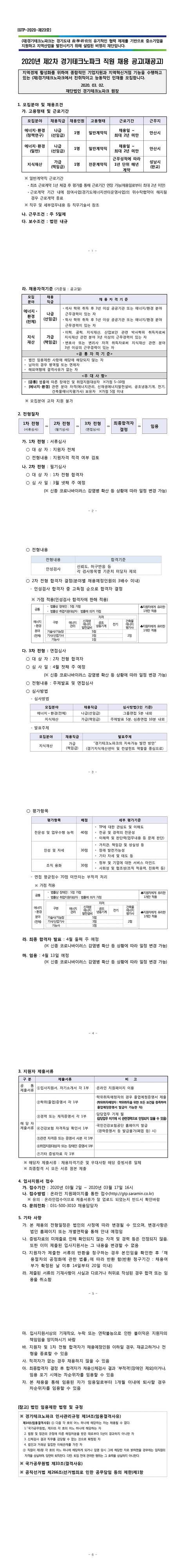 2020년 제2차 경기테크노파크 직원 채용 공고(재공고)