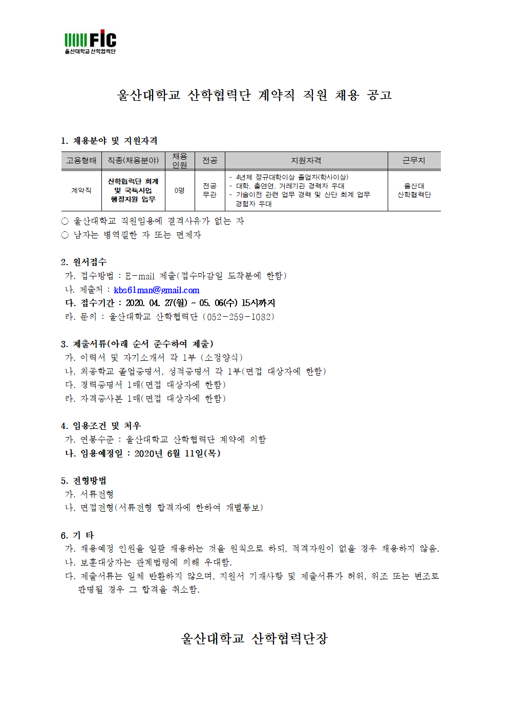 [울산대학교 기술사업화 회계 담당 계약직 모집 공고]