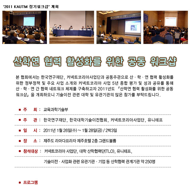 [총회] 사단법인 한국대학기술이전협회 정기총회 - 2010 사업결과 및 결산 보고 - 2011 주요사업 계획 및 예산 승인 |