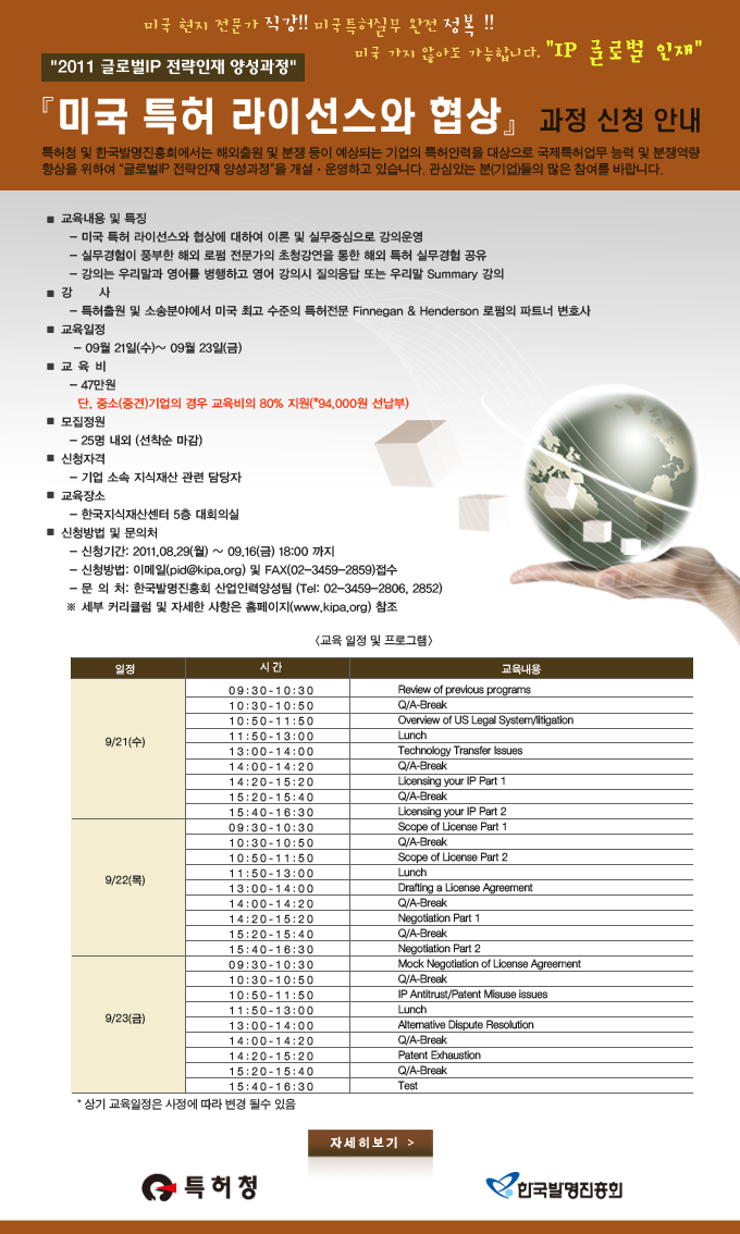 [교육]『미국 특허 라이선스와 협상』과정 신청 안내