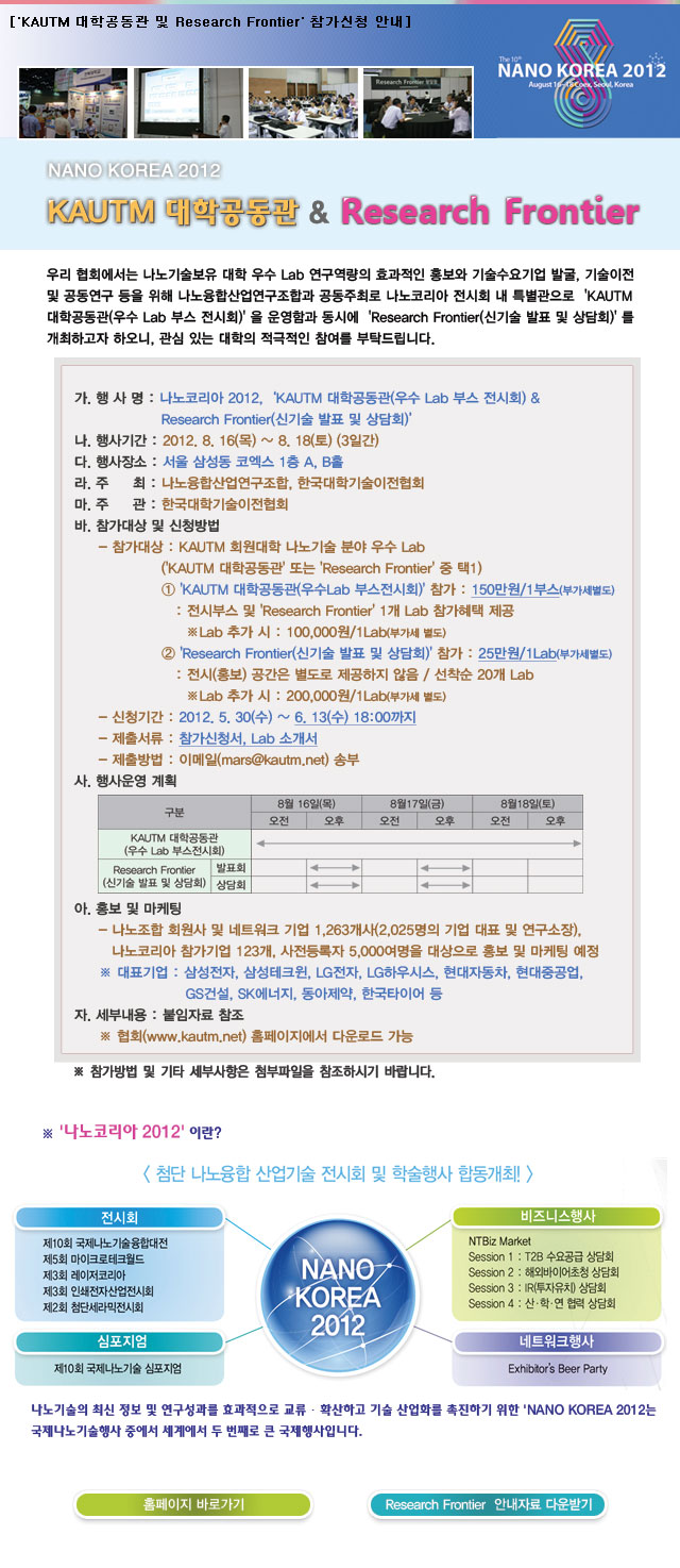 KAUTM 대학공동관 및 Research Frontier 참가신청 안내