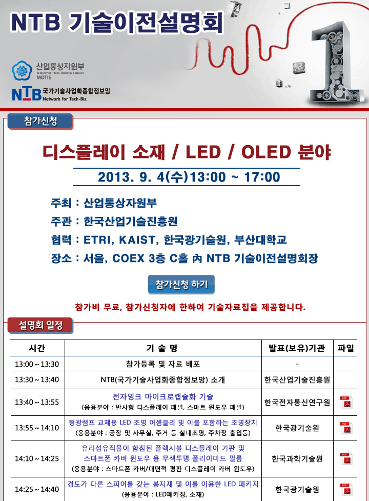산업통상자원부 주최『 디스플레이 소재/LED/OLED 분야 기술이전설명회 개최 』9/4