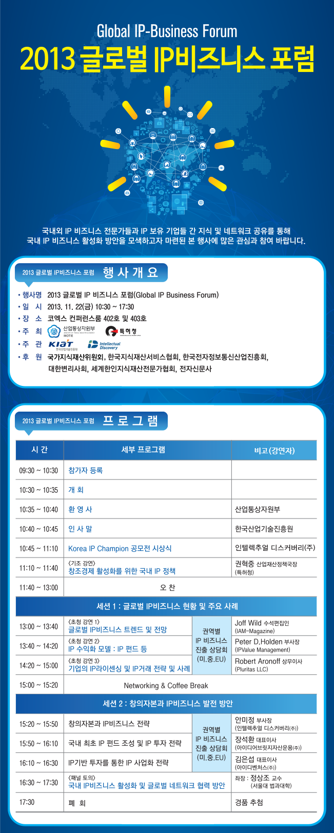 산업통상자원부 주최『 2013 글로벌 IP비즈니스포럼 개최 』11/22