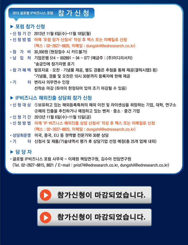 포럼 참가 신청서IP 비즈니스 해외진출 상담 신청서