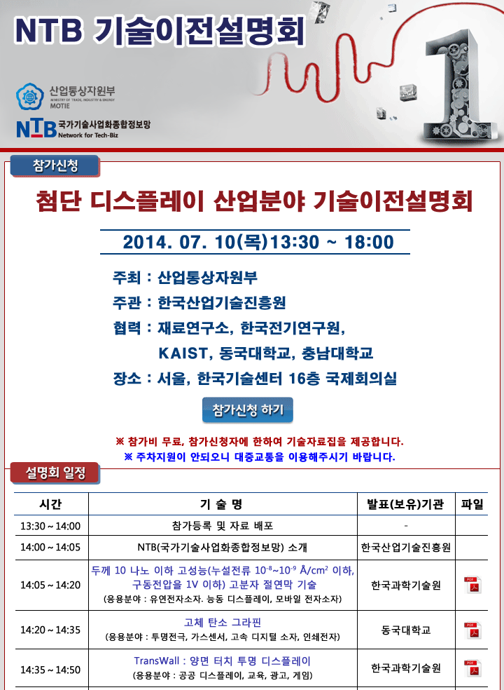 『 첨단 디스플레이 산업분야 기술이전설명회 개최 』7/10