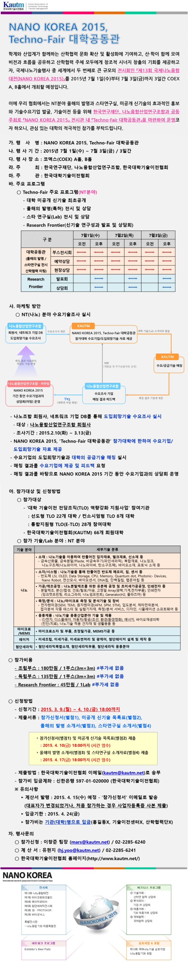 '나노코리아 2015, Techno-Fair 대학공동관' 참가신청 안내