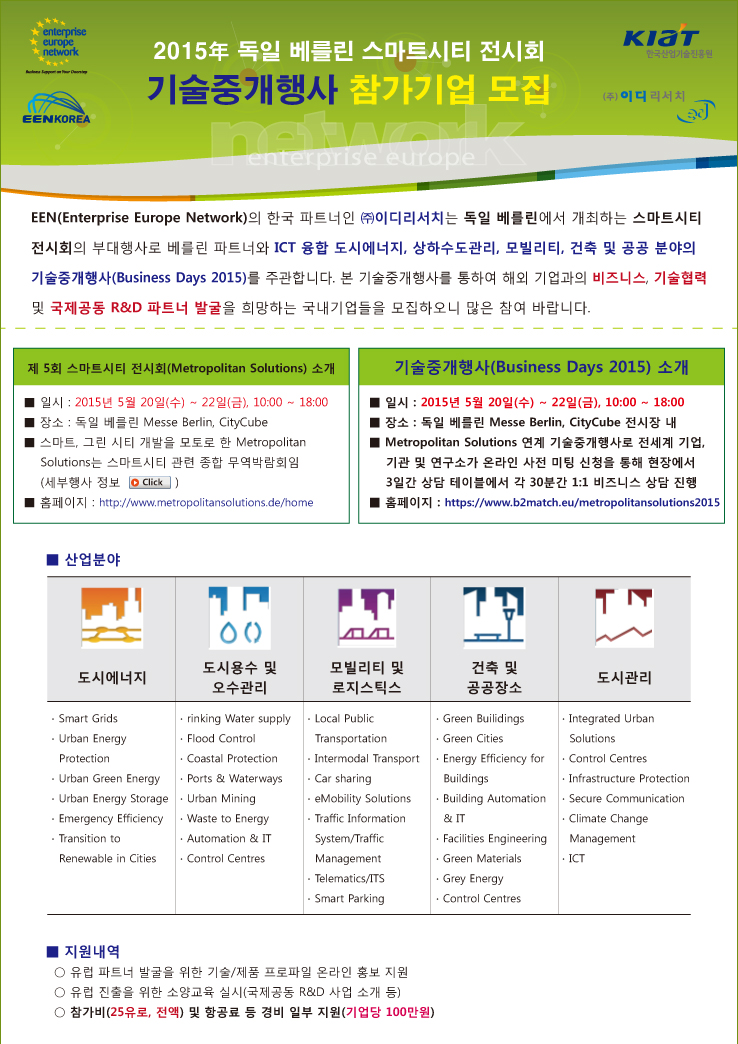 『 2015년 독일 베를린 스마트시티 전시회 기술중개행사 참가기업 모집 』~ 4/2