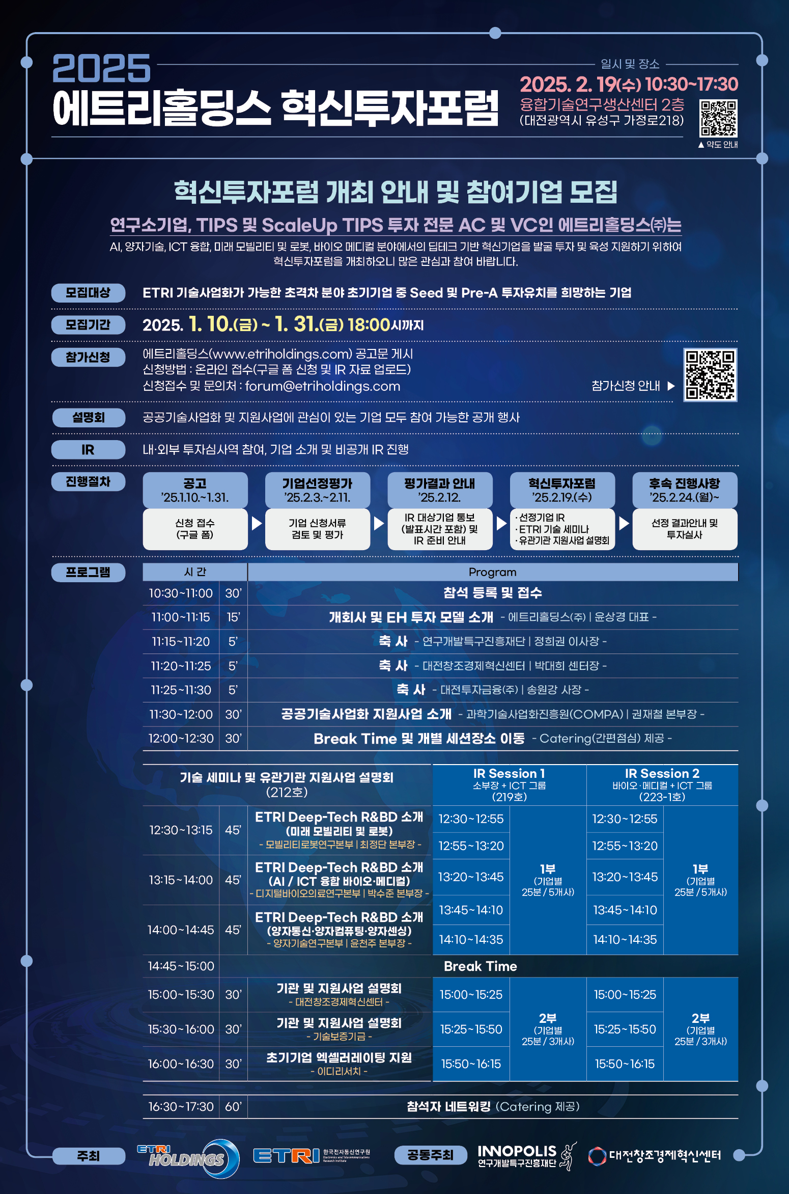 - 혁신투자포럼 참여기업 모집을 통해 IR 대상기업 선정 예정